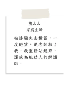 我希望透過分享,讓每位學生都能活出命運之外的極致幸福、豐盛及自在,找到屬於自己的光與力量。讓我們一起探索這段神秘而美麗的旅程。